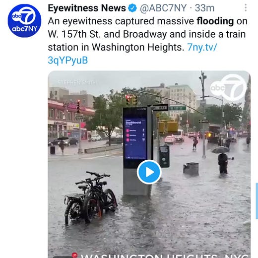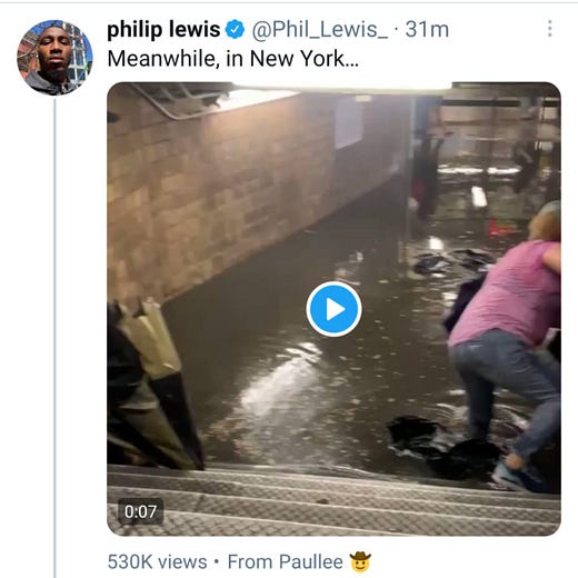 Ah, Zeynep. First of all, how can you call them "hidden fees" when they are hidden in plain sight? Consider how fortunate you are to overpay for something that 40% of New York City residents can't afford, and that would be substantially cheaper if you got it, say, Indonesia. But as Andre Gregory said in the movie, My Dinner with Andre, Manhattan is a concentration camp where all the inmates have convinced themselves there is no better place in the world to live, so welcome, welcome! But one thing about the flooded subway pics you shared--while it is distressing to have to walk through a few feet of water to get to one's train, I need to point out that in the background of the first clip you shared, you can clearly see the train arriving on the platform. That is true NY grit on display.